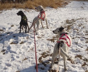 So we surmounted that obstacle, but there was a bigger one looming. Namely, that Squash wasn’t all that interested in staying out in front or pulling. Not completely surprising, since he was young and inexperienced and half Not Alaskan Husky, and he had an inexperienced handler/trainer. But what to do about it? Having another team walking in front of you can be helpful, as is hooking up your young, green pup with an experienced sled dog. But I had neither of those things… or did I?