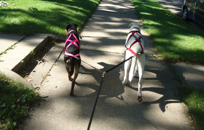 Now obviously, since I’ve already talked about Maisy and Squash as a team, you know that on the day of the big experiment, a beautiful thing happened (he’s in just a plain harness here, too):