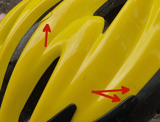 My noggin, on the other hand, was fine, despite landing mostly on my temple. I was stunned for a minute, then ecstatic when I saw that the dogs had stopped only about 20 feet down the trail and were looking back at me, then realized my shoulder was going to be very very sore soon, then wondered if I’d be dead if I hadn’t been wearing the helmet. The funny thing is, up until that point I had been pretty cavalier about the helmet and wore it fairly intermittently. You can be sure I wear one every time, now (and yes the one I fell on has been replaced).