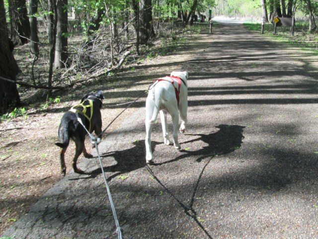 Now that the division of labor is more evenly divided, I’ve been gradually working on increasing the dogs’ conditioning. The weather has been cool enough and I’ve been dragging myself out of bed early enough to safely start adding some distance to our runs.