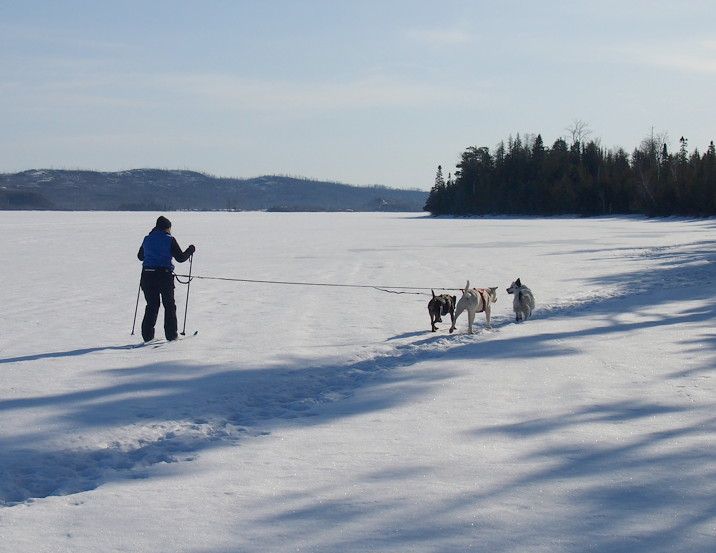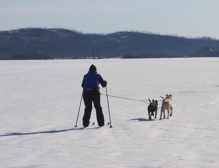 The next few days we got up early and went skijoring on the lake while the snow was still hard, and it was glorious. Smooth, flat, FAST snow as far as the eye could see with zero distractions, and the dogs really cut loose. This is what skijoring would always be like if there were no trail-side objects to sniff and pee on.