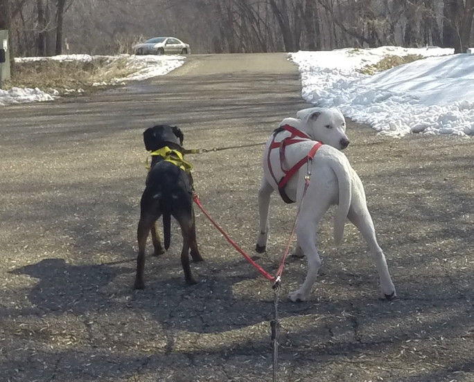 These lovely dogs are waiting nicely (if impatiently, in Squash’s case) to get going: