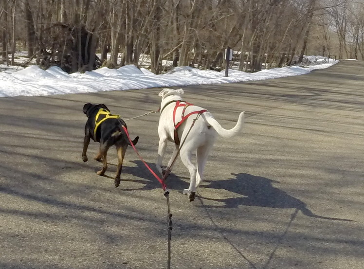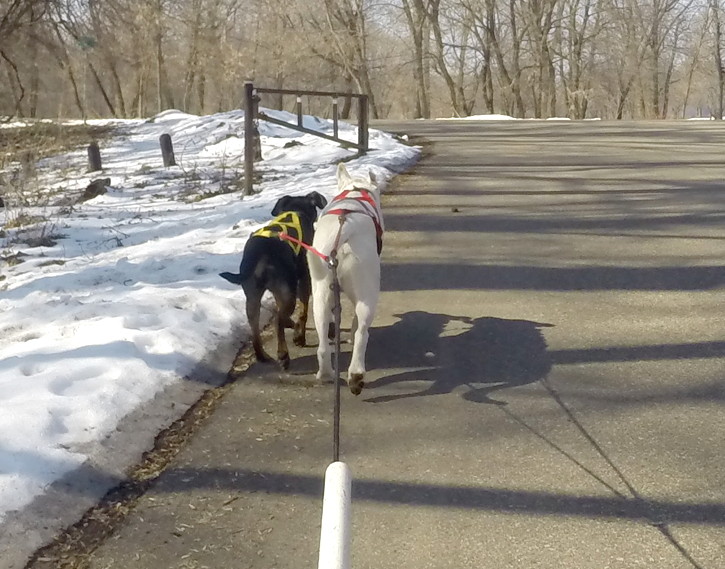 My dogs are blessed with tough feet; still, I don’t normally like to start them out on pavement first thing in the spring. But the dirt trails are stubbornly refusing to ice out and today I just couldn’t stand it anymore and I don’t think they could either given that it’s now April 6th.