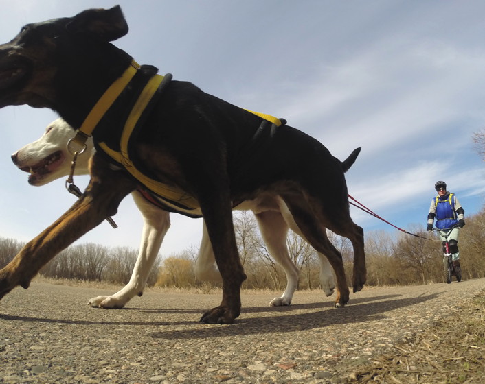 We always get a lot of friendly interest when we’re out scootering. Today a nice young man asked me if what we do is unique, and as I always do I relish the chance to explain that this is a “real” sport. It makes me feel like part of something wonderful to talk about the sport as a whole, even if I’m just a little two-dog mushbaby.
