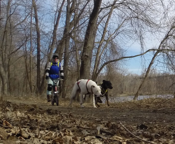 Over the winter I tried out a new trail for skijoring (the one with the swans), and I’m excited to try it out for scootering. It’s unpaved throughout its distance and I don’t anticipate any gravel, so it should be nice and easy on their feet.