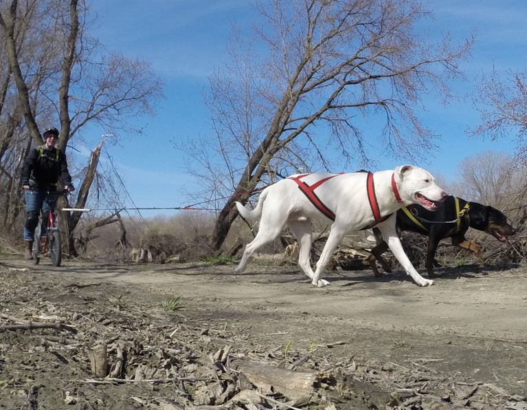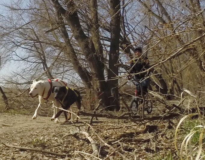 It was raining yesterday morning when I got up, so I ended up going to a yoga class instead of running the dogs because I knew the trail would be muddy. But then it cleared up and stayed sunny and warm all day, then dawned sunny and cool today, so out we headed.